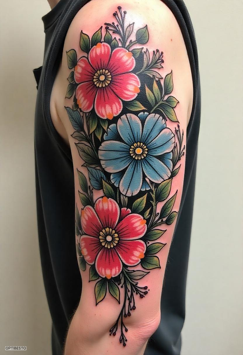 Bold lines and vibrant colors ensure these tattoos age gracefully over time.