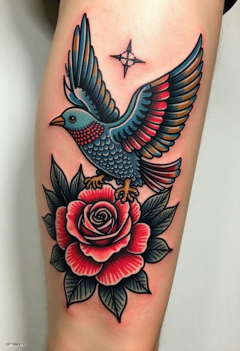 Classic motifs like a rose, anchor, or sparrow are great choices for first-timers, as they’re timeless and don’t require extensive commitment to large coverage.