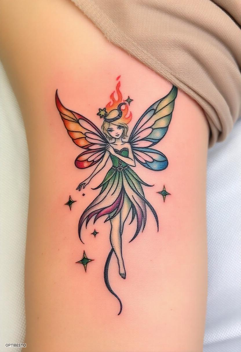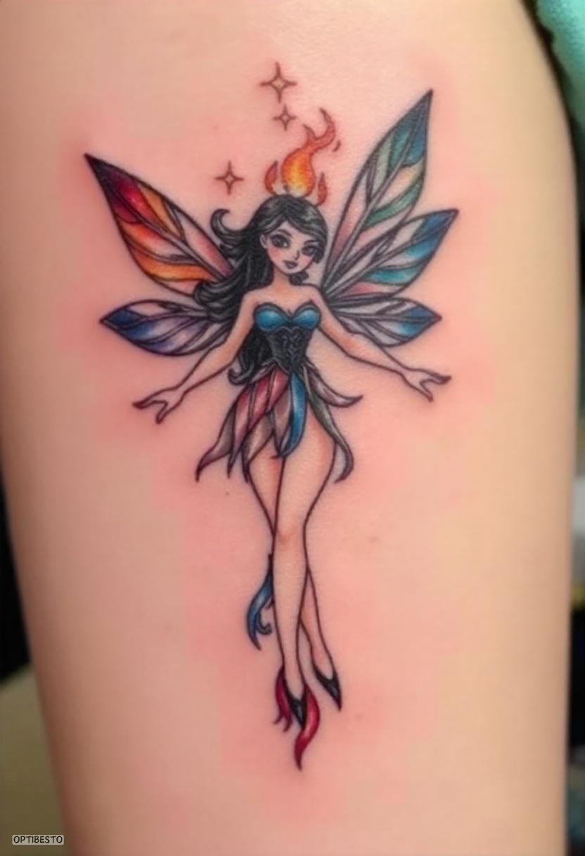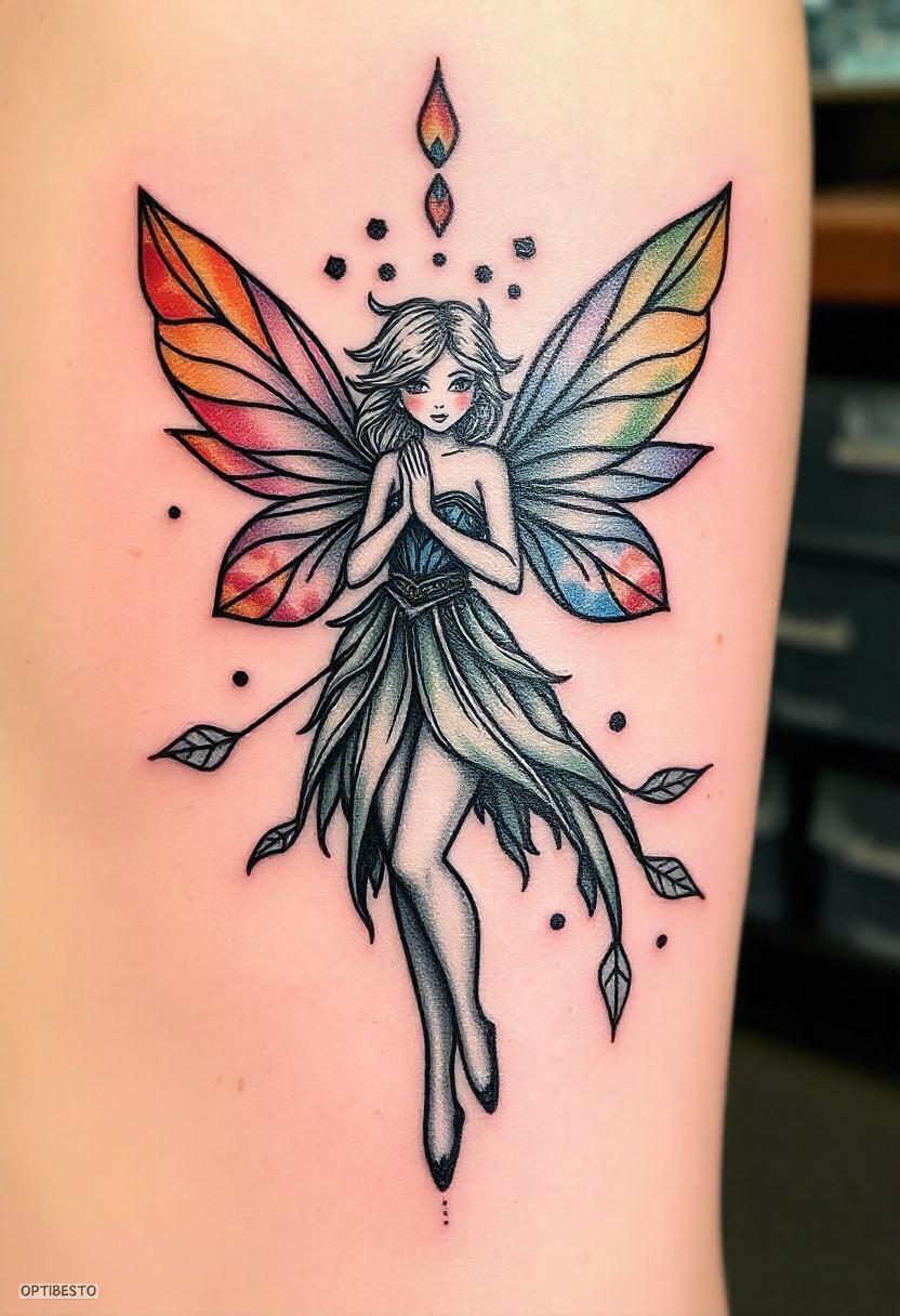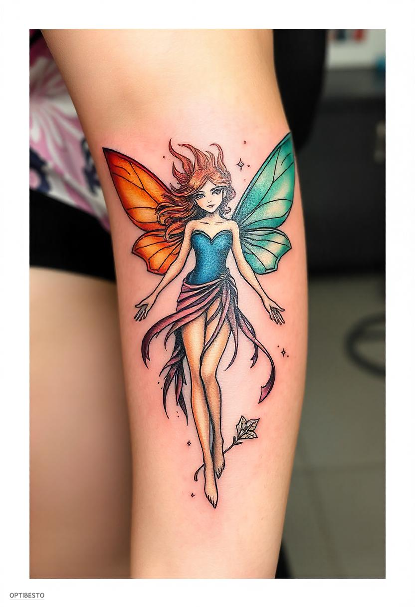 Fairy tattoos often involve vibrant colors or delicate shading to bring out the ethereal quality of the design.