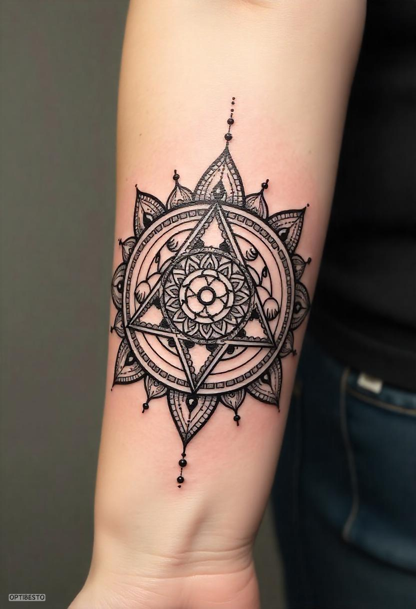 Incorporate cultural or spiritual elements that hold personal significance. For example, a mandala inspired by Buddhist teachings or a yantra tied to Hindu traditions can make your tattoo even more meaningful.