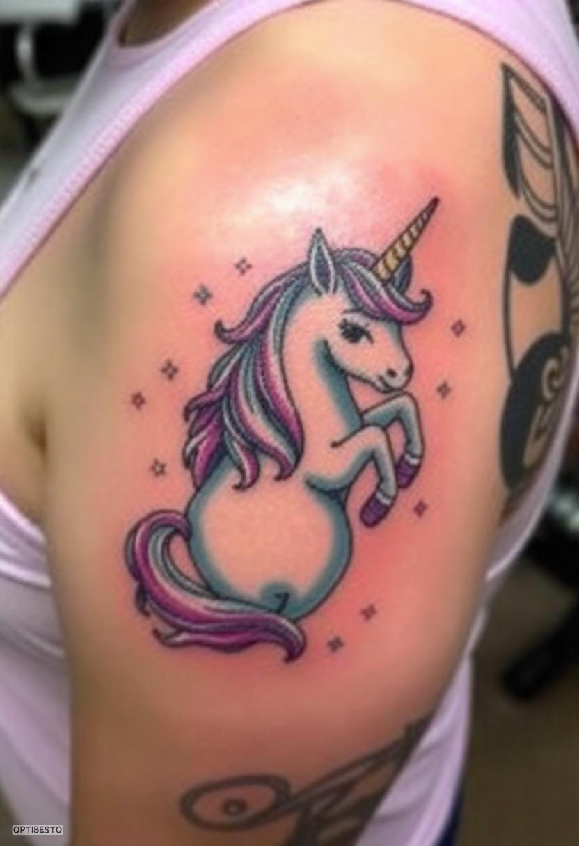 For larger, more intricate designs, the shoulder or upper arm is a fantastic canvas. This area allows the tattoo to flow naturally with the body’s contours, making it ideal for majestic unicorns with flowing manes.