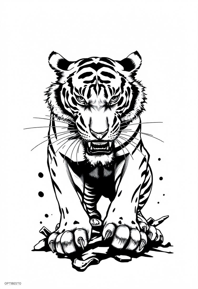 - Paws and Claws: Don’t neglect the details of their powerful limbs and sharp claws; they’re essential to the tiger’s character.