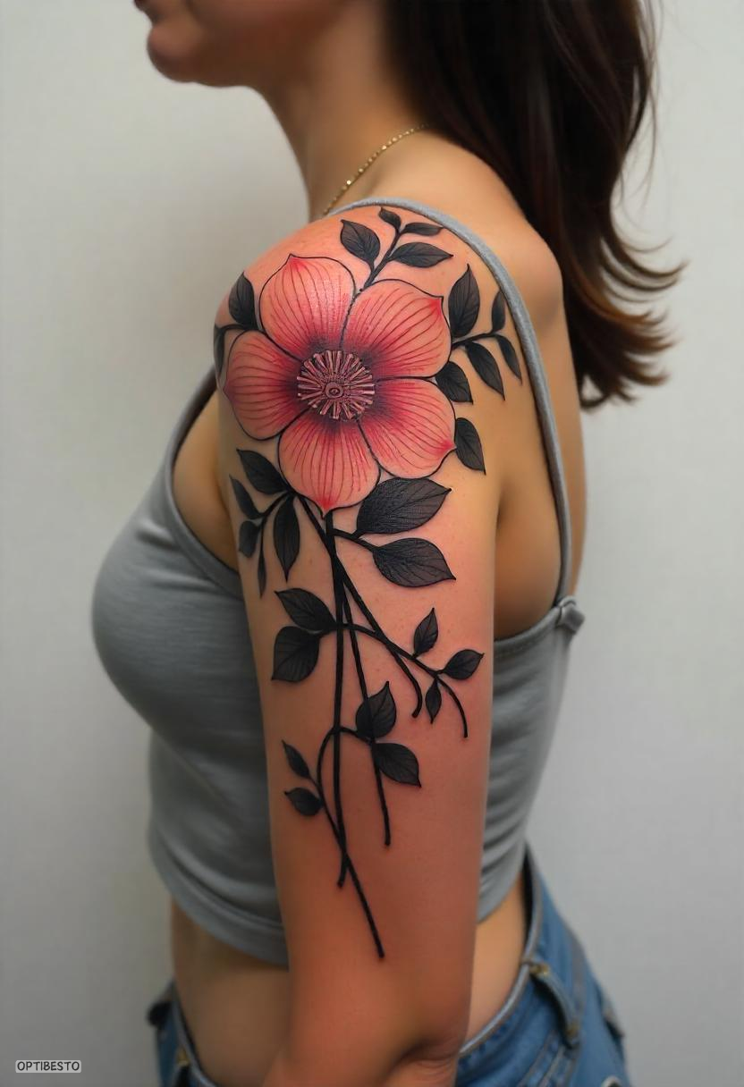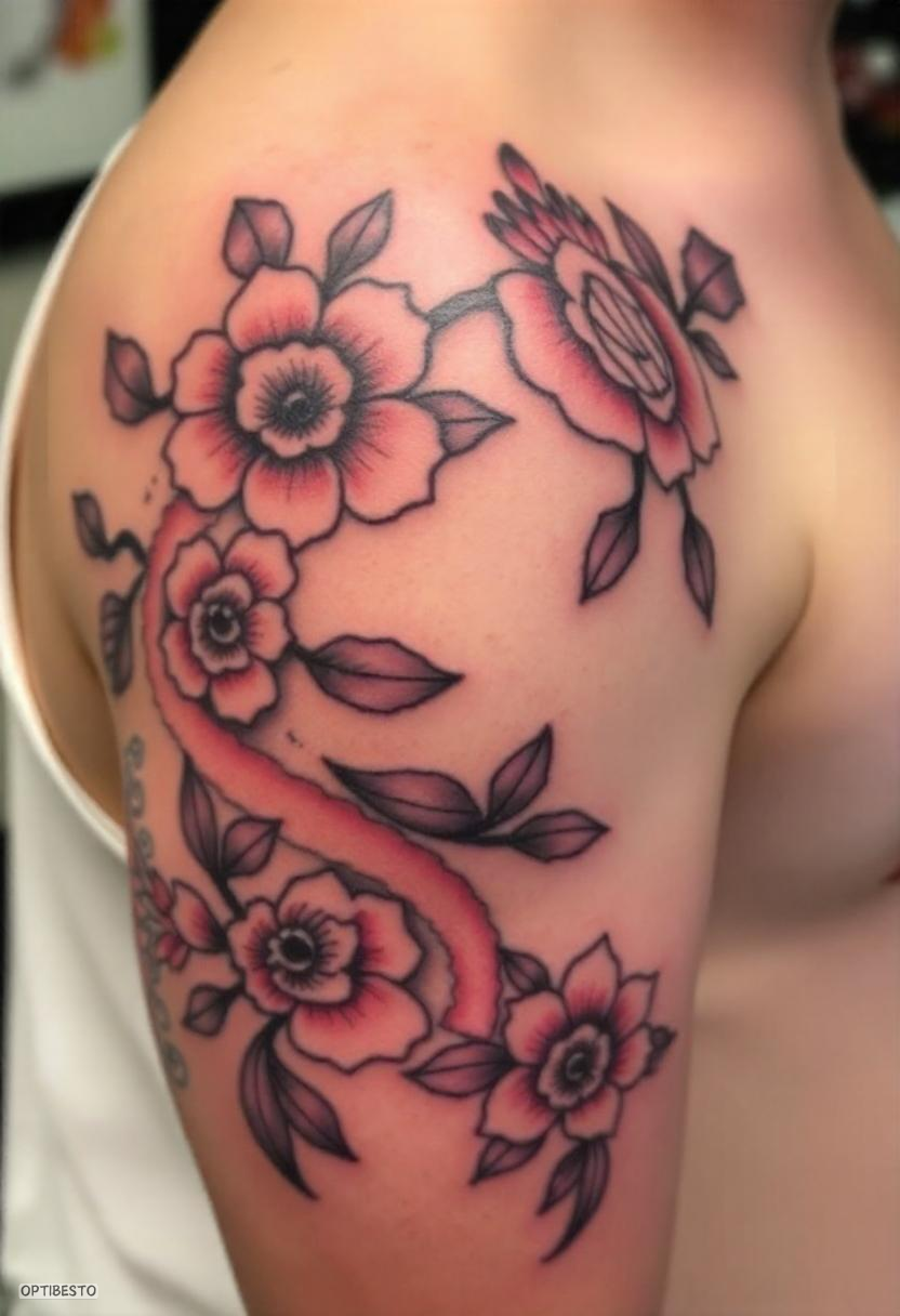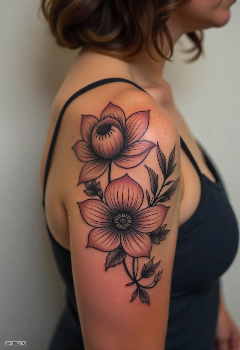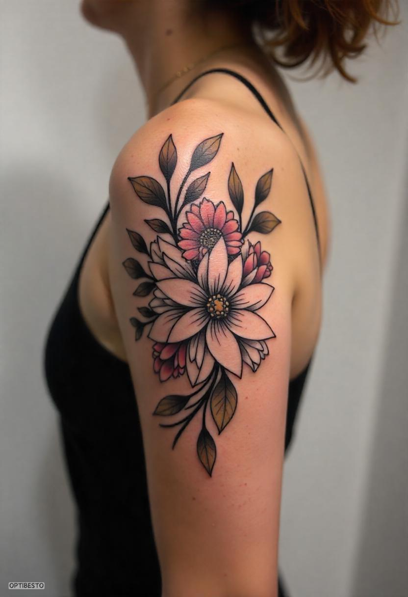 Floral designs can wrap around the shoulder, creating a natural flow that enhances the body’s curves.