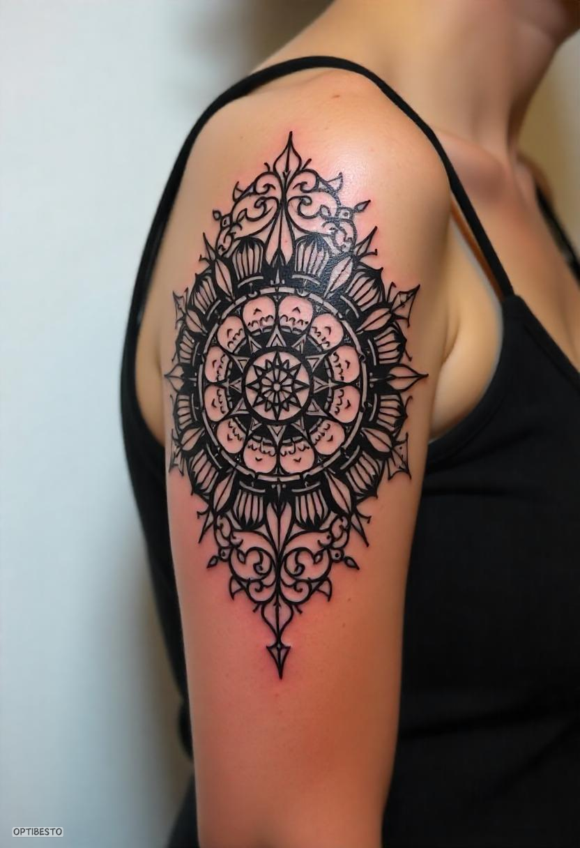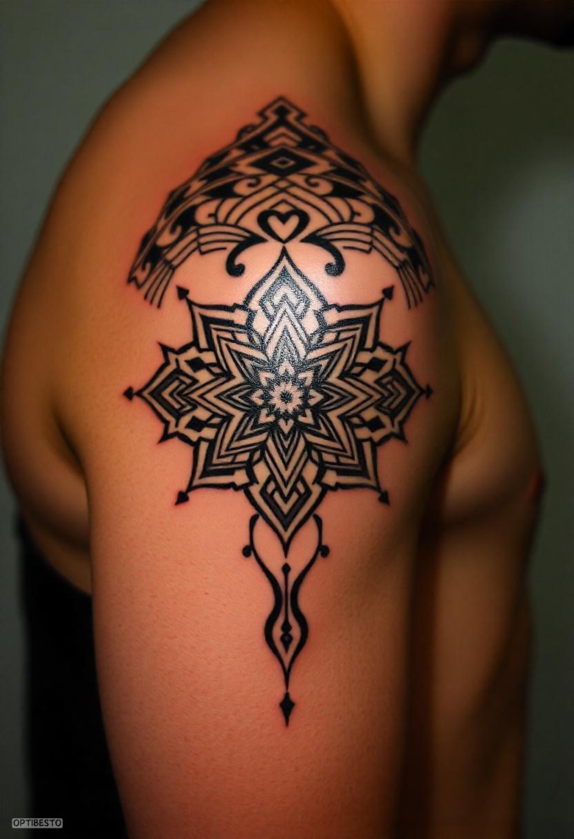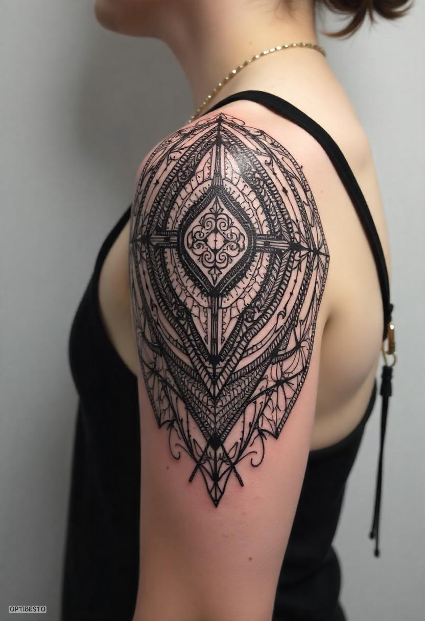 A tattoo that spans the entire shoulder, from the collarbone to the upper arm and back, provides a larger canvas for complex designs. This is great for mandalas, tribal patterns, or animal designs.