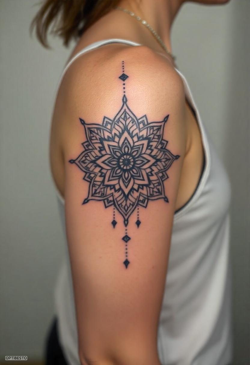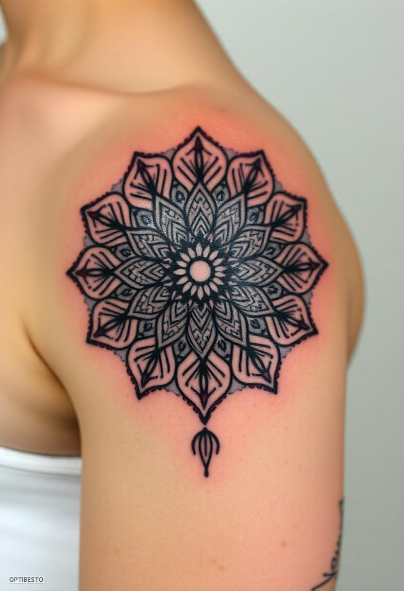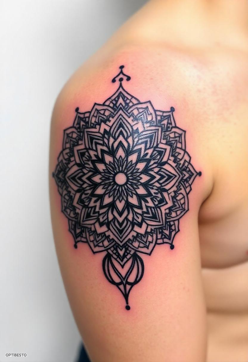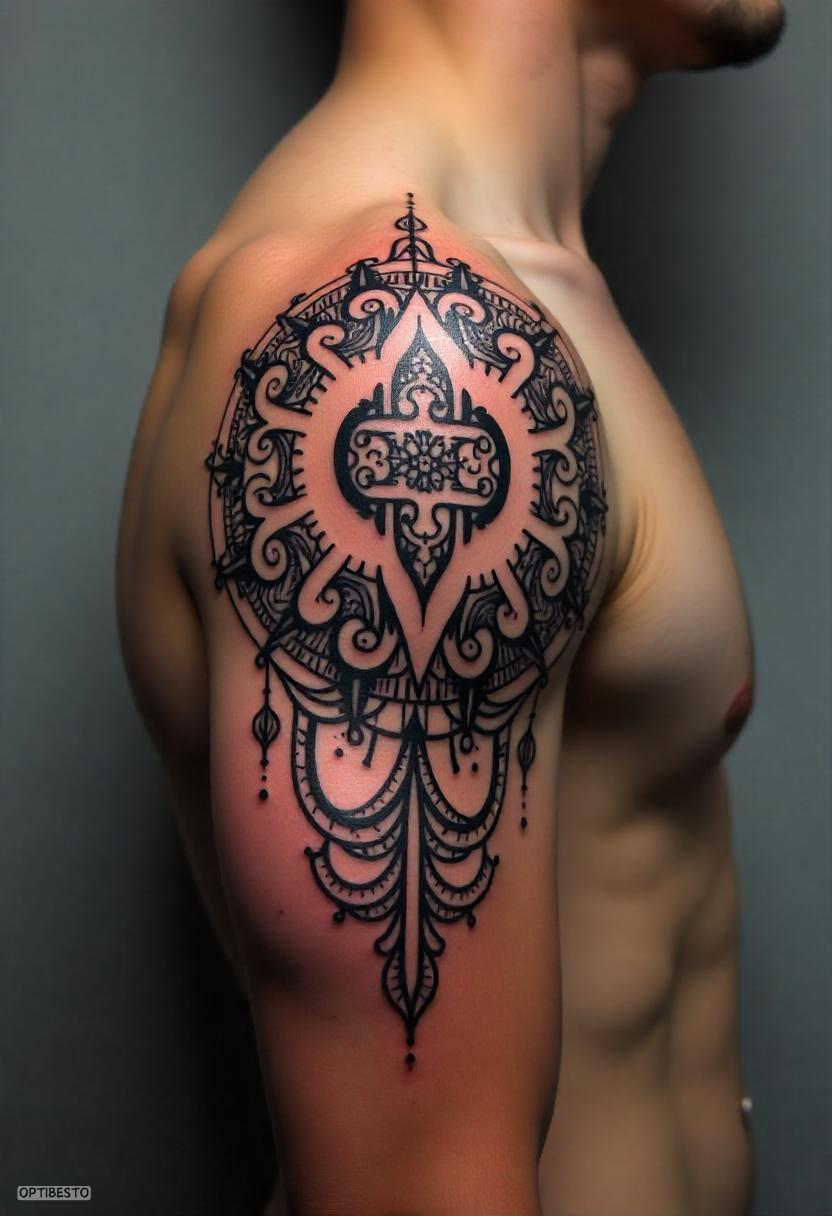 A tattoo that spans the entire shoulder, from the collarbone to the upper arm and back, provides a larger canvas for complex designs. This is great for mandalas, tribal patterns, or animal designs.