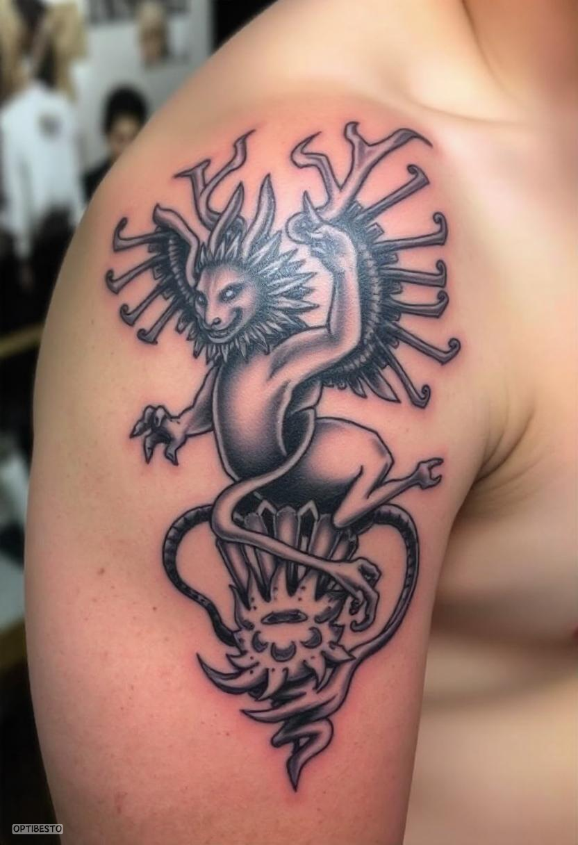 Tattoos on the shoulder can extend to the upper arm, back, or chest, making them ideal for connecting different pieces to form a cohesive full-body design.