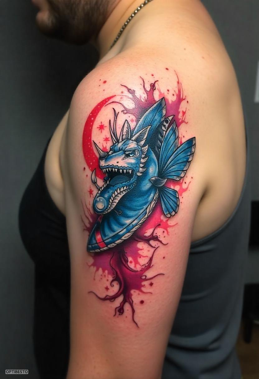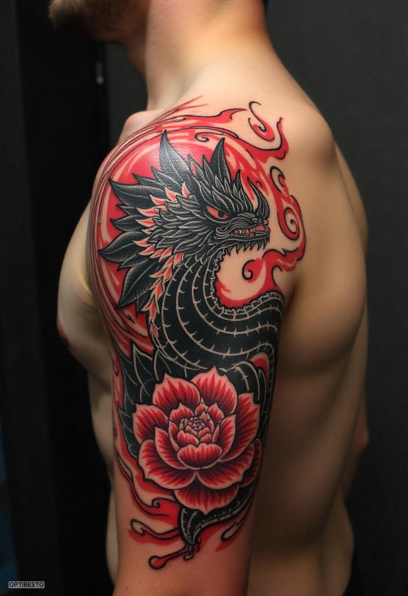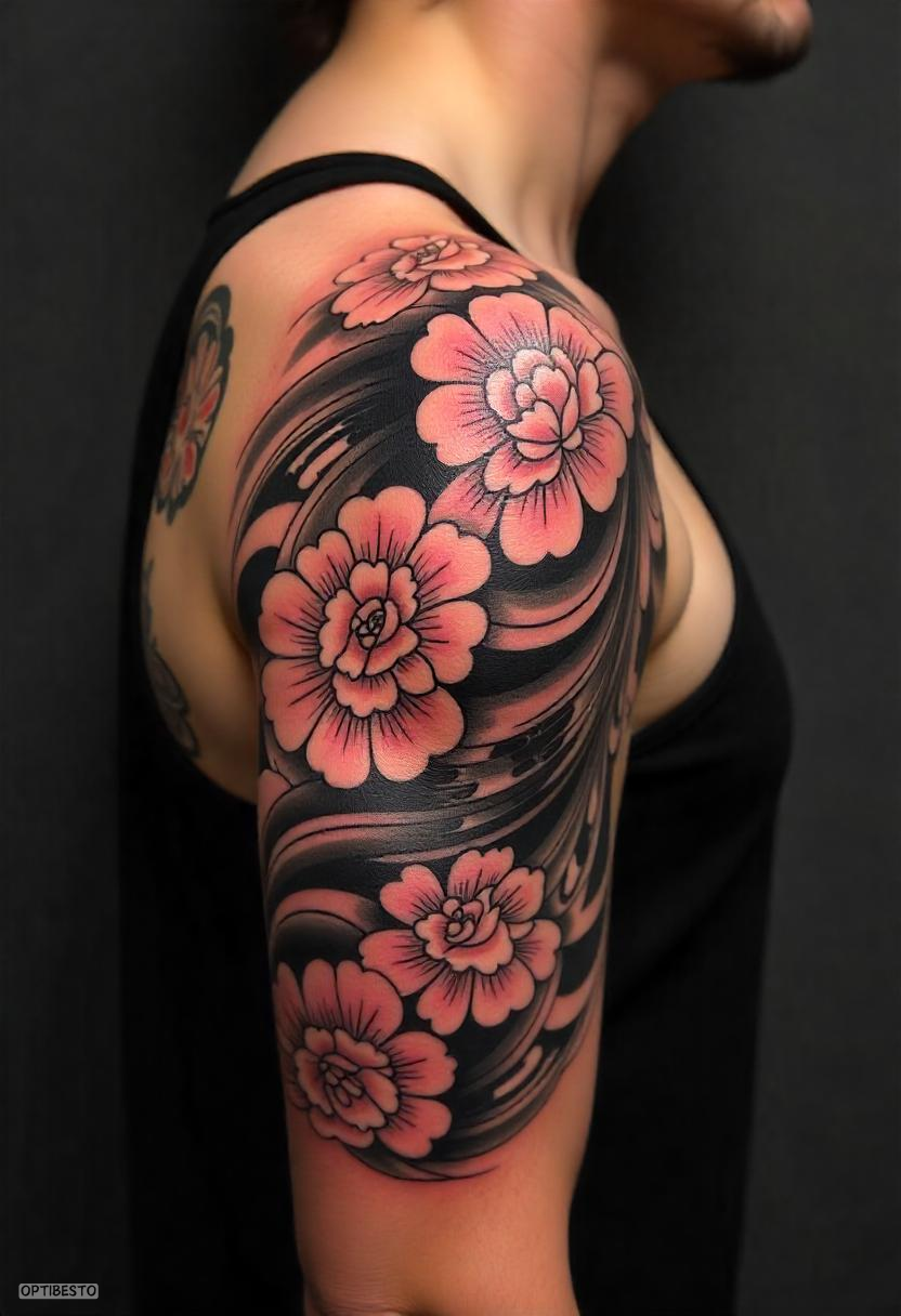 Japanese tattoos are deeply rooted in tradition, often featuring dragons, koi fish, cherry blossoms, and waves. Shoulder tattoos in this style usually incorporate rich colors and symbolic elements.
