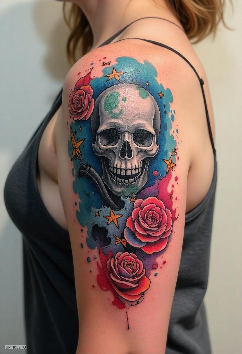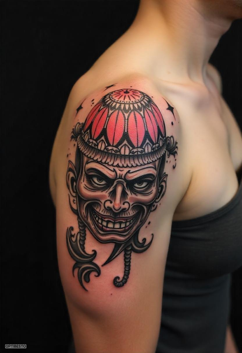Neo-traditional tattoos blend traditional boldness with modern artistic elements, incorporating intricate details, vibrant colors, and dynamic shading. This style is versatile and looks striking on the shoulder.