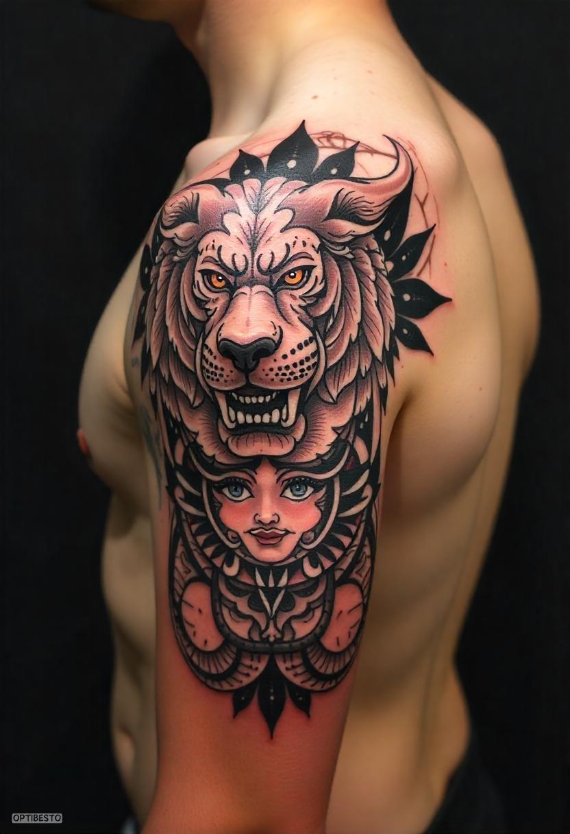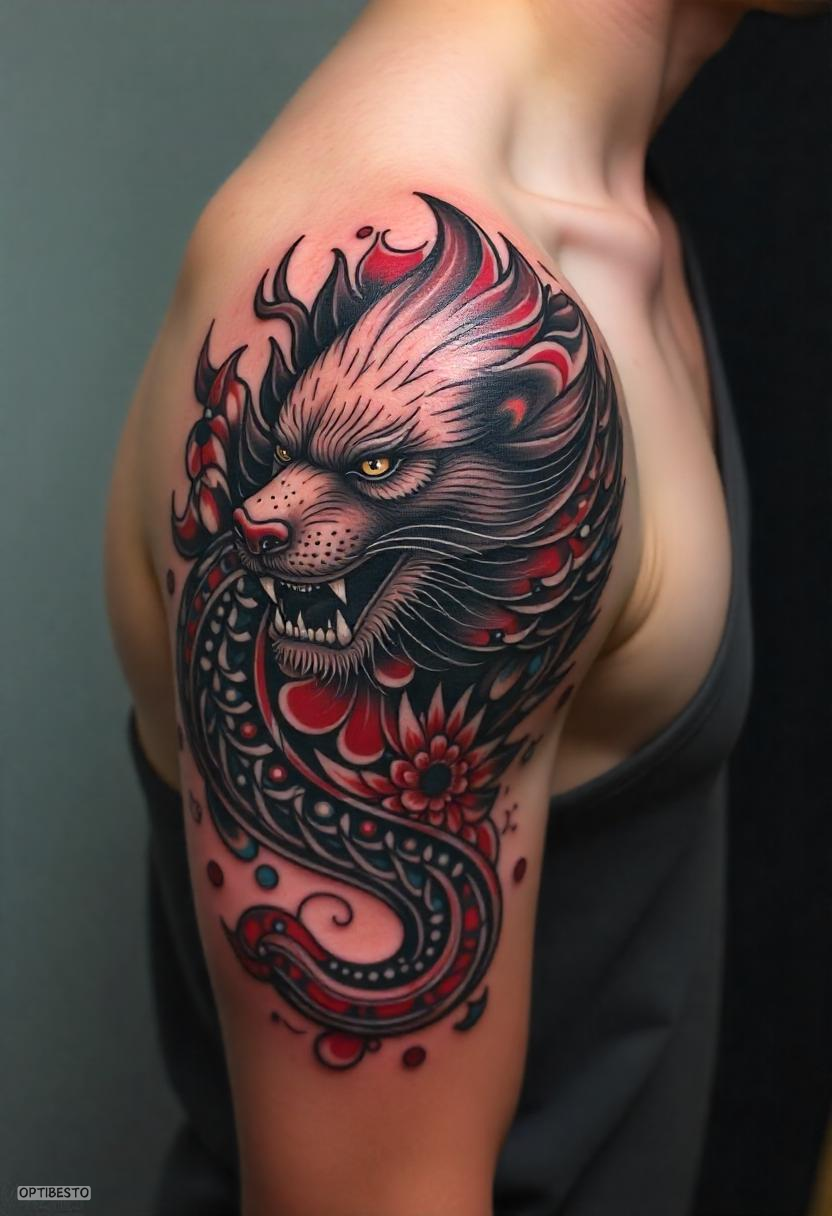 Animals are a common theme in shoulder tattoos due to their rich symbolism and versatility.